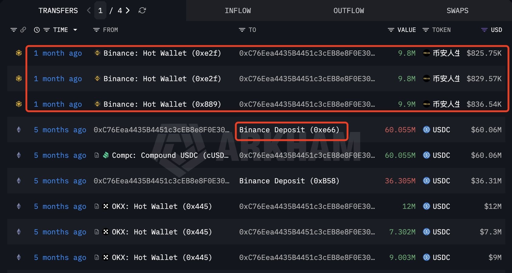 14 Nisan'da, Residue izlemesi, "Binance Hayatı" kontrolünde olduğuna inanılan bir kişinin 6 adet cüzdandan toplamda 57.88 milyon jetonu, yaklaşık 9.37 milyon dolar değerinde, Binance platformundan çektiğini gösterdi. Ayrıca, aynı kişinin, aynı zamanda Şubat sonlarında veya benzer şekilde, 2 ilişkili cüzdandan 59 milyon jeton çektiği de görüldü.