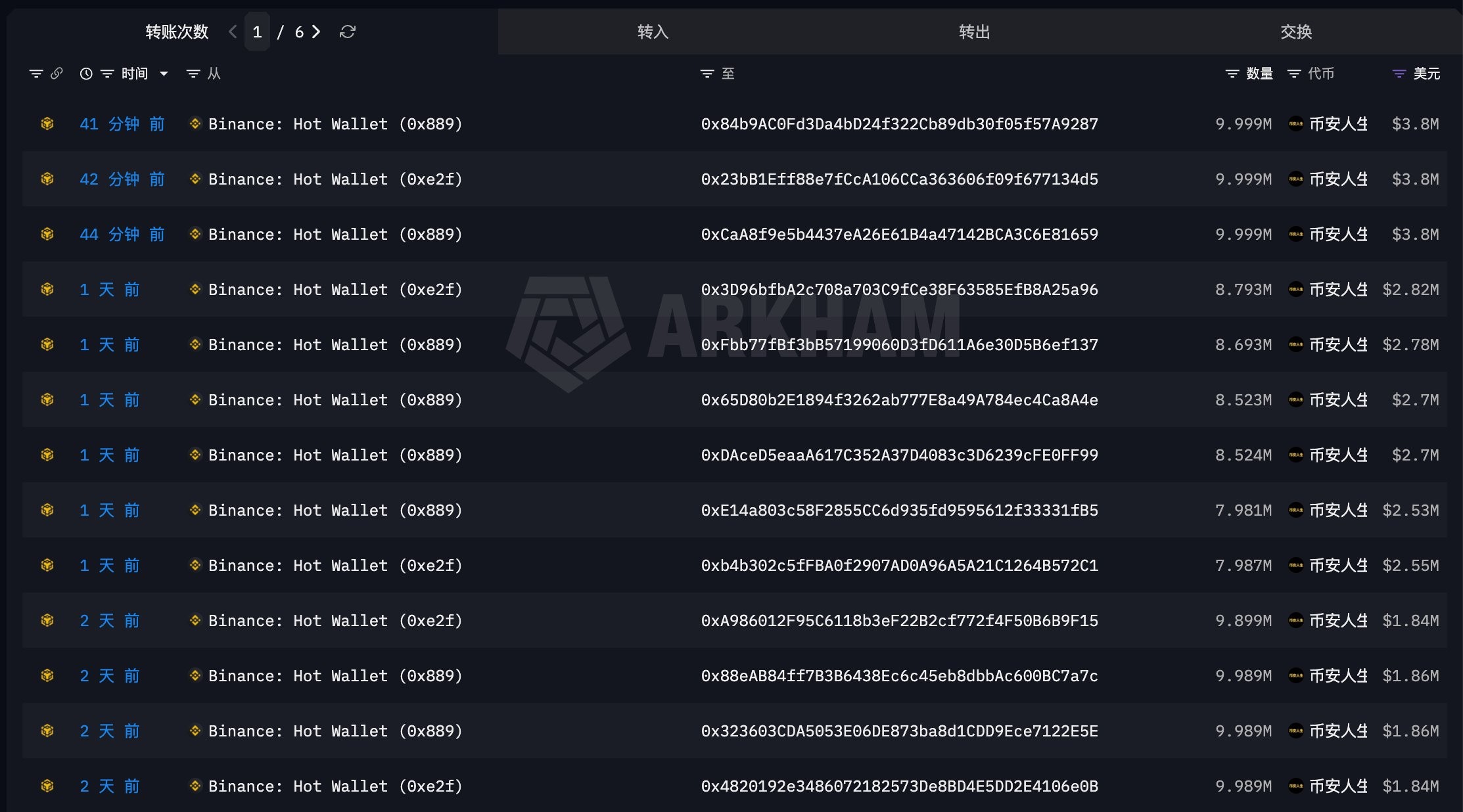 14 Nisan akşamı saat 19:00 civarında, balina 6 cüzdandan tekrar Binance'dan 50.5 milyon "Binance Hayatı" jetonu (yaklaşık 16.08 milyon dolar) çekti ve bu "Binance Hayatı" tokeni için adresi şu anda toplam arzın %19.7'sine denk gelen 197 milyon jetona sahip ve 62.58 milyon dolar değerindedir.